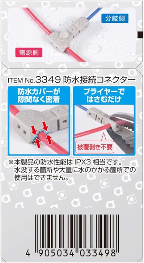 エーモン 防水配線コネクター 防水性能ipx規格3相当 割り込み分岐用 2899