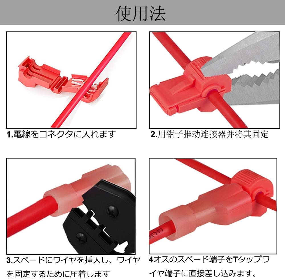 amazon t型分岐 エレクトロタップ タップ 平型端子 スリーブ 5組set 分岐後 取り外しができる これは便利 かしめた後もまた外せる 車用端子 車 バイク