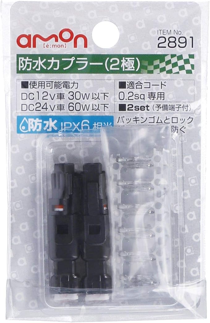エーモン 防水カプラー2極 適合コード 0 2sq用 2セット 2891