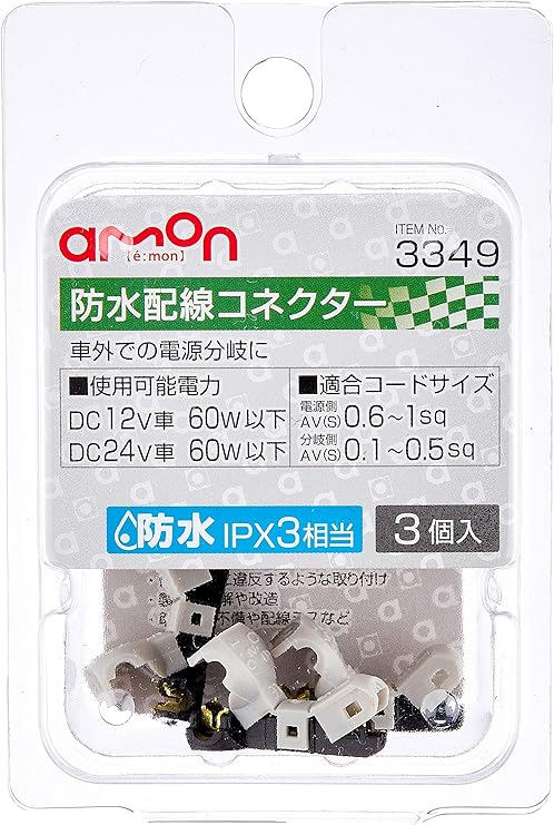 amazon co jp エーモン amon 防水配線コネクター 防水性能ipx3相当 電源側av s 0 6 1sq 分岐側av s 0 1 0 5sq 3個入 3349 車 バイク