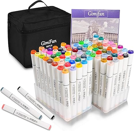 amazon co jp gimifan マーカーペン 80色 セット ペンスタンド ホワイト ライナーペン 油性 太字 細字 80本 ホビー