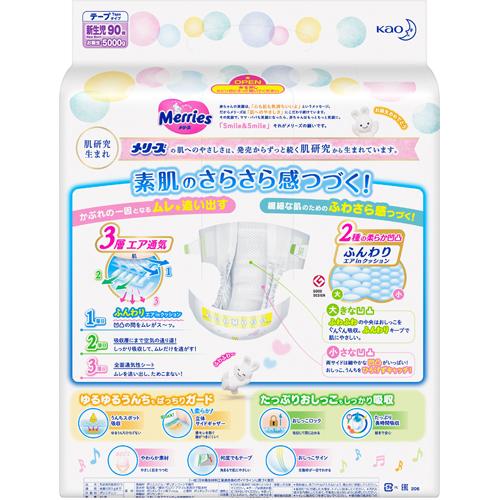 最安値 花王 メリーズ さらさらエアスルー 新生児用 袋90枚 0782 の価格比較