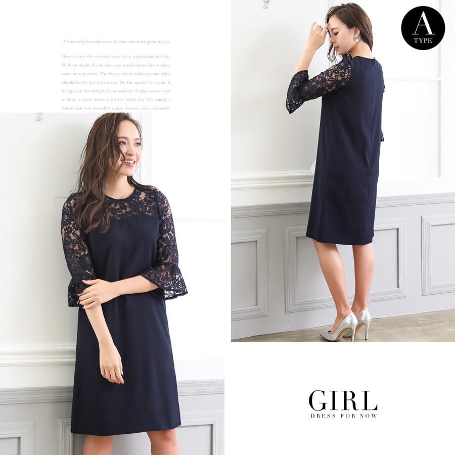 dresstell ドレステル 結婚式 パーティードレス ワンピース レース 袖あり 膝丈 vネック 二次会 お呼ばれ イブニング レディース