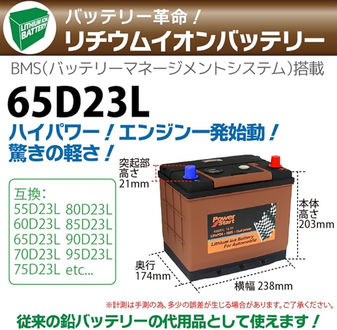 amazon 自動車用 リチウムイオン バッテリー 65d23l 55d23l 60d23l 65d23l 70d23l 75d23l 80d23l 85d23l 90d23l 95d23r 互換 カーバッテリー 車 バイク