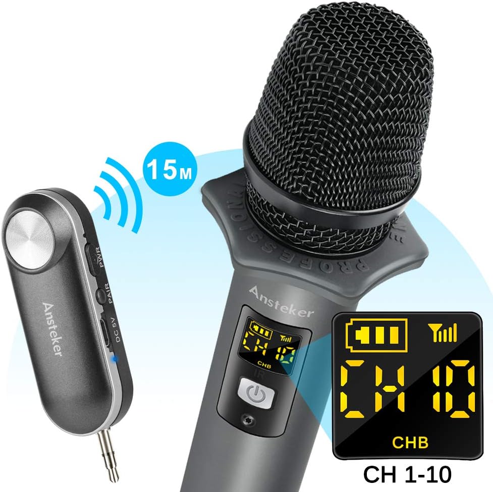 amazon ワイヤレスマイク ansteker ポータブル拡声器 高音質 軽量 uhf 無線マイク 10チャネル 3 5 mm 6 35mmステレオミニプラグ プロテクトリング付き 会議 カラオケマイク ホームパーティー に大活躍 ワイヤレス 楽器