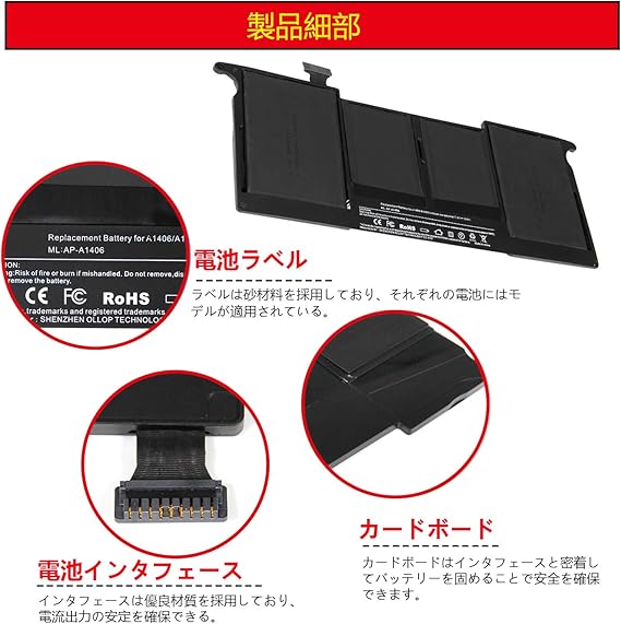 macbook air 11 inch バッテリー a1406 a1370 a1465 a1495 2011 2015年発売 apple mc968 mc969 md223 対応 マックブック パソコン 互換 バッテリパック 一年保証 自社製品 ブラック