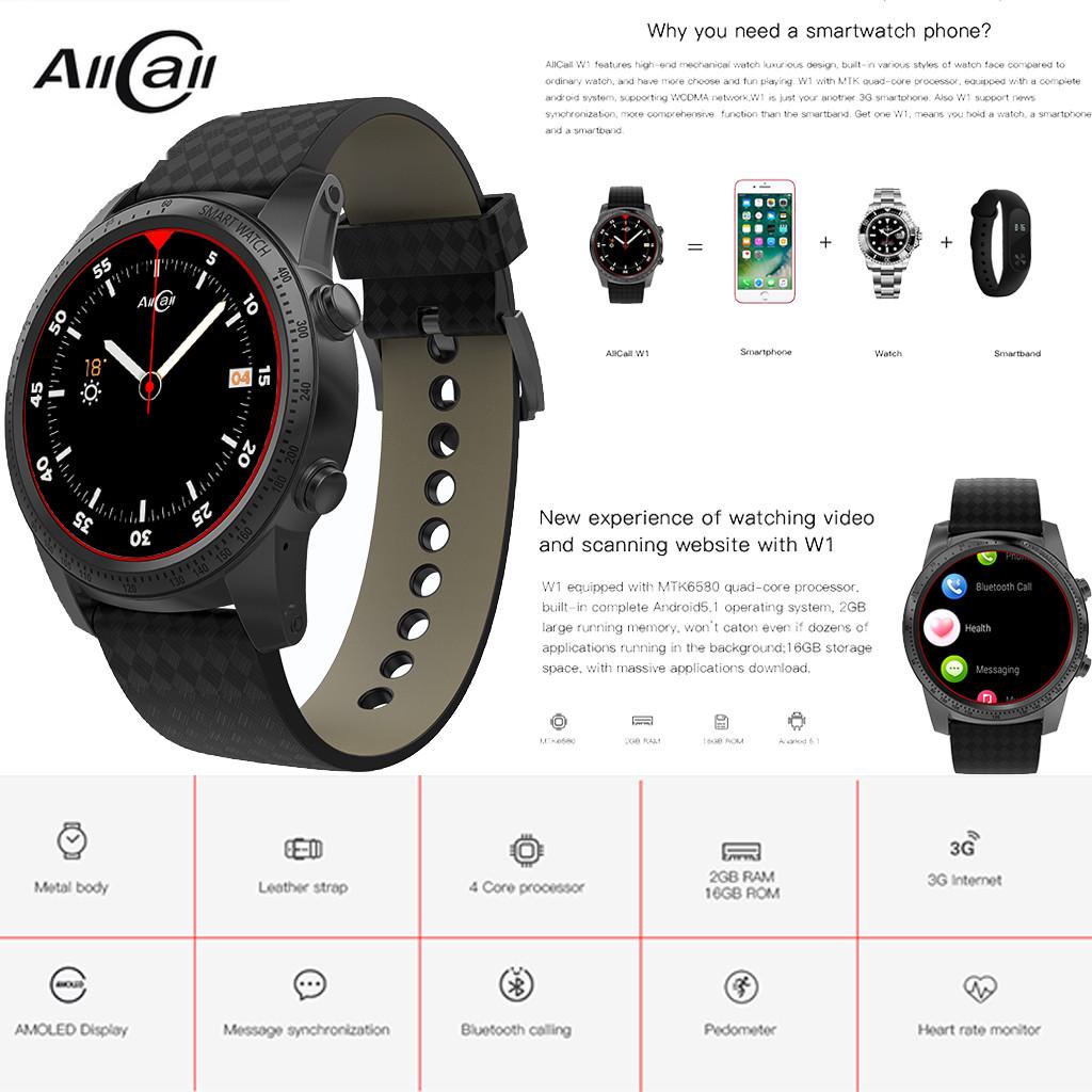 allcall w1 smart watch 3g 2g watch phone android 5 1 2gb ram 16gb rom mtk6580m quadcore call notification heart rate monitor pedometer alarm metal