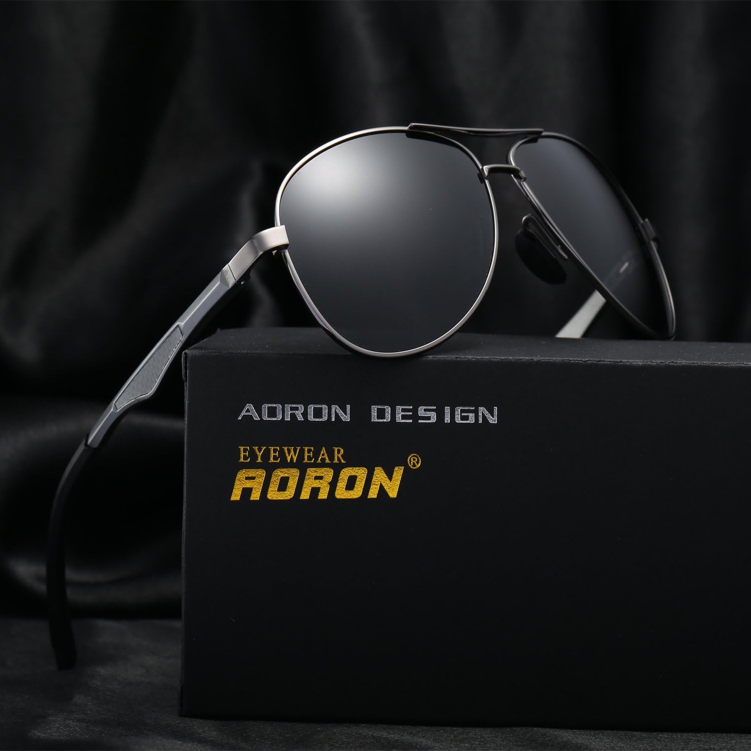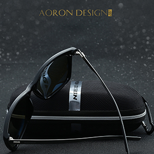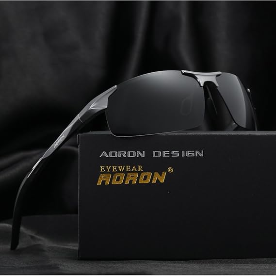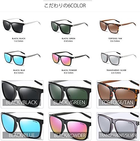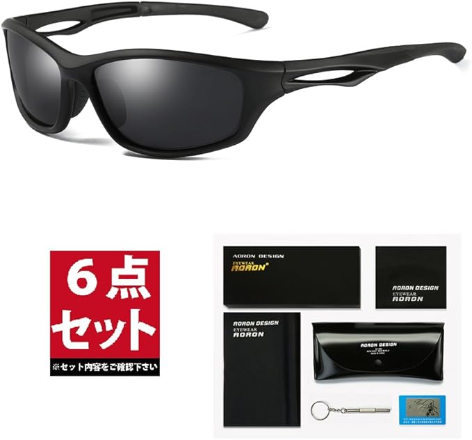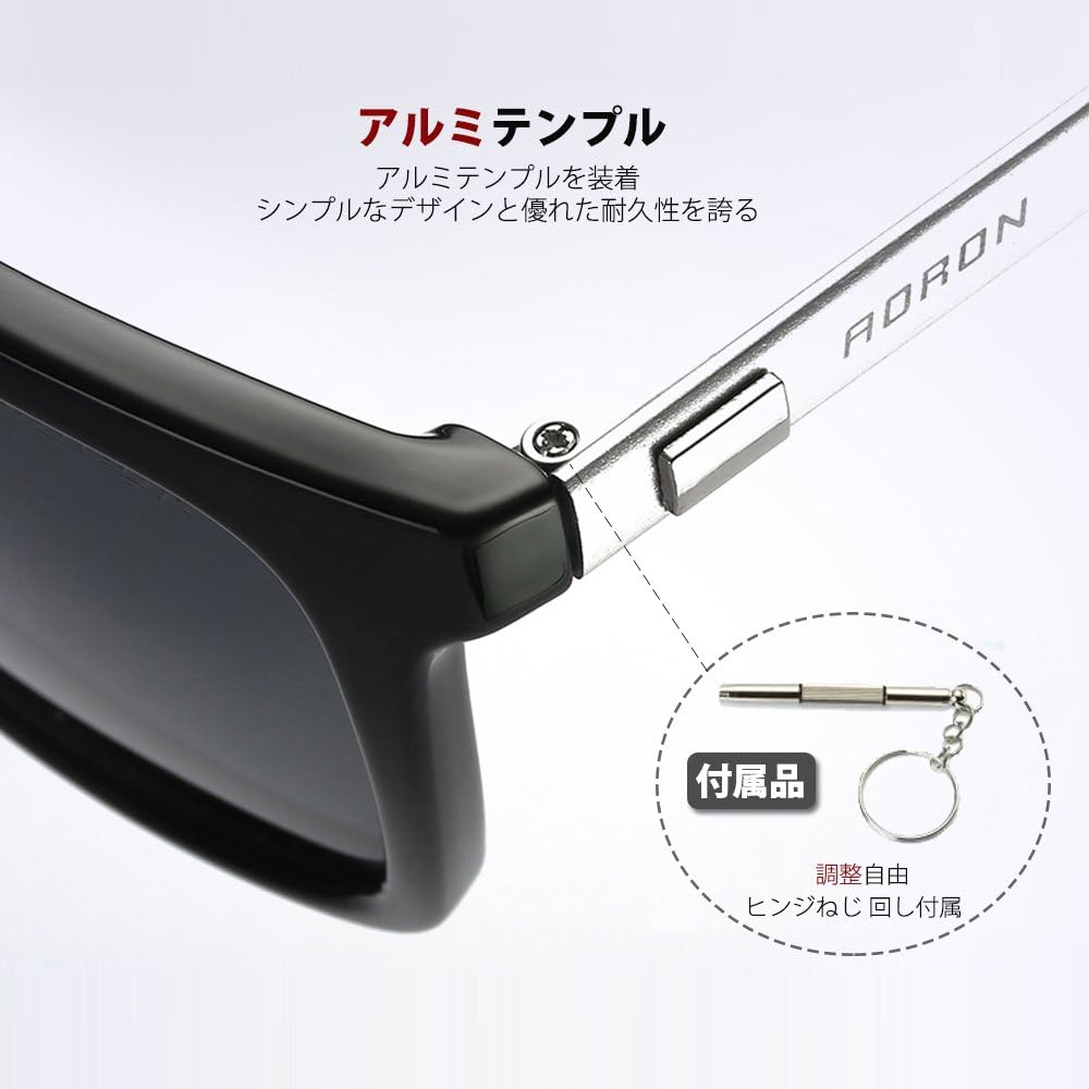 amazon aoron サングラス 偏光 メンズ tac偏光レンズ ウェリントン uv400 紫外線カット アルミ合金テンプル 超軽量 6色選択可 black black サングラス 通販