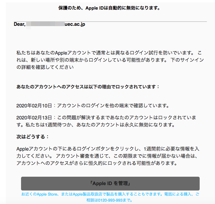 2020 3 4 2 50 appleを騙る詐欺メールに関する注意喚起 情報基盤センターからのお知らせ