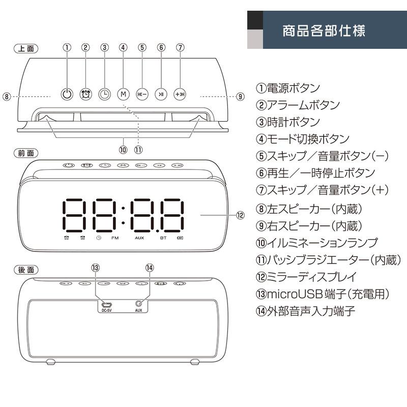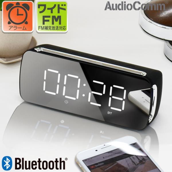 audiocomm ワイヤレススピーカー クロックラジオ ブラック asp w450n k 03 3188 オーム電機