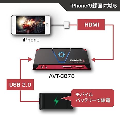 avermedia live gamer portable 2 plus avt c878 plus 4kパススルー対応 ゲームの録画 ライブ配信用キャプチャーデバイス dv478