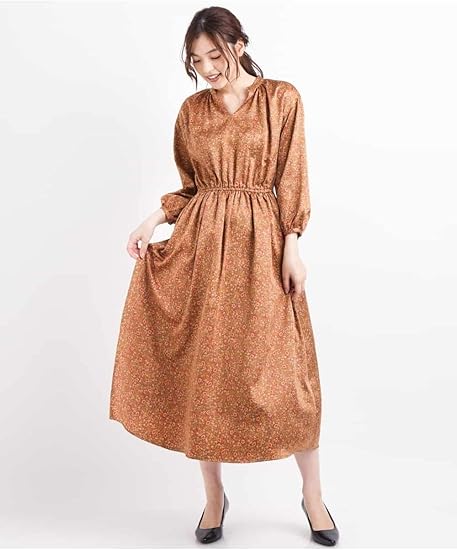 amazon アーヴェヴェ a v v ギャザーネックプリントワンピース web限定サイズ k2efg11079 xs カーキ ワンピース チュニック 通販