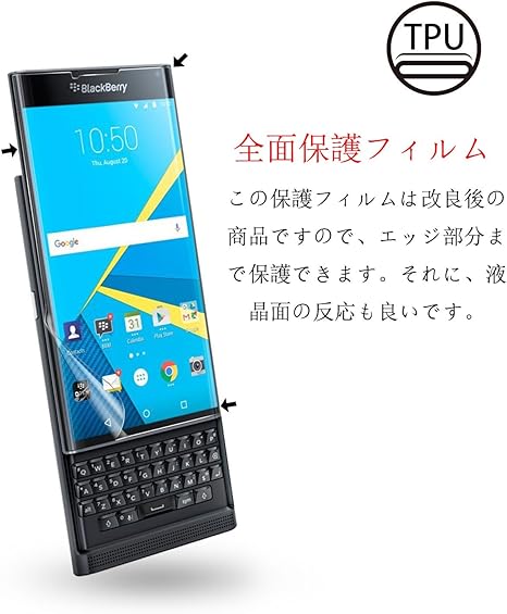 eurpmask blackberry priv用 保護フィルム 高透過率 スムースタッチ 耐久性 撥油性 指紋防止 保護フィルム 3枚付き 液晶面フィルム3枚 品質保証 blackberry priv
