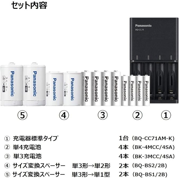 amazon co jp限定 パナソニック エネループ 単4形充電池 4本 スタンダードモデル bk 4mcc 4sa 単3形充電池用 サイズ変換スペーサー 2本入 単3形 単2形 bq bs2 2b
