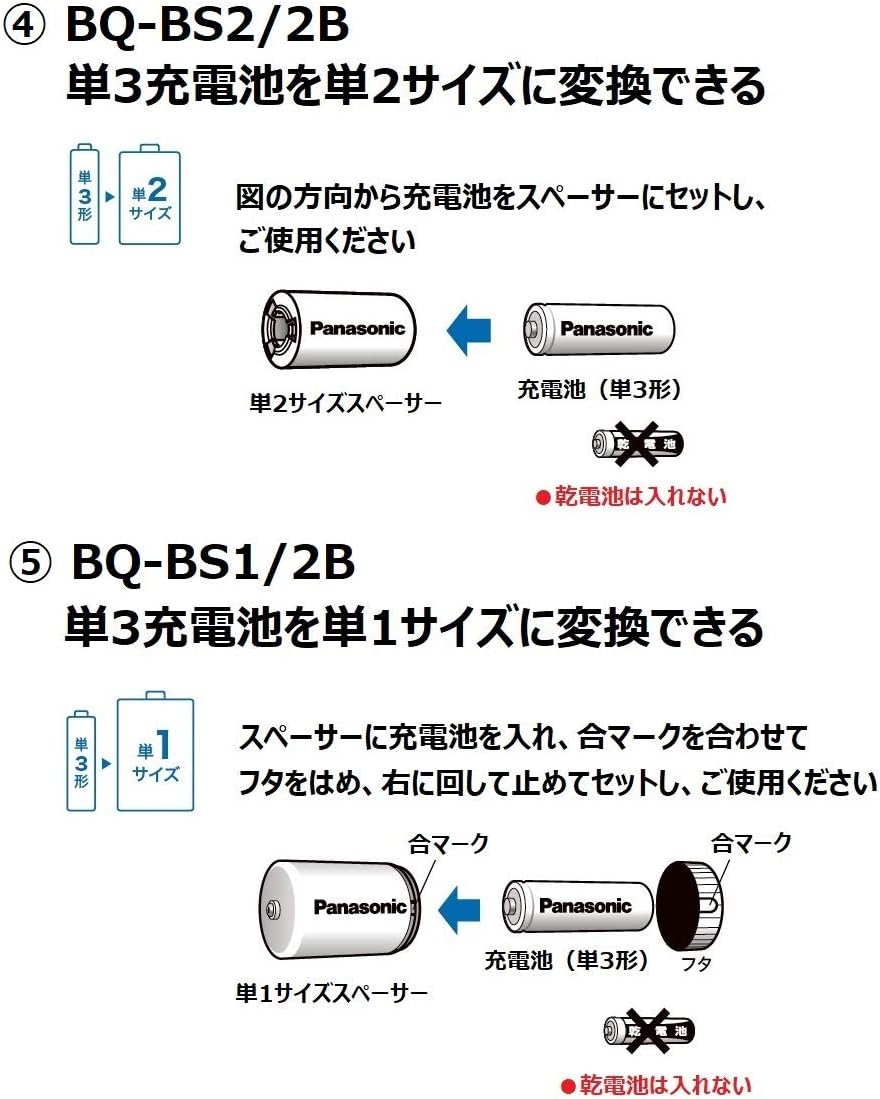 パナソニック 単3形充電池用 サイズ変換スペーサー 2本入 単3形 単2形 bq bs2 2b