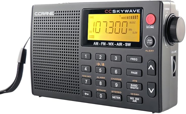 amazon c crane cc skywave am fm ショートウェーブ ウェザー エアバンド ポータブルトラベルラジオ 時計とアラーム付き c crane ポータブルラジオ