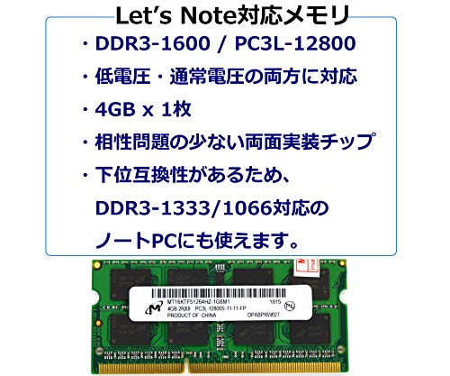 最安値 let s note対応 ノートpc用メモリ cf nx2 cf nx3 cf sx2 cf sx3 cf lx3 cf lx4 cf b11対応 pc3l 12800 ddr3l 1600 4gb の価格比較