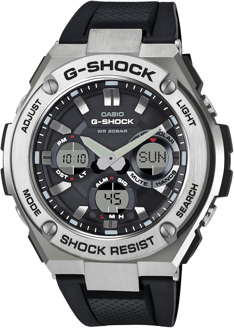 amazon casio カシオ g shock gショック 電波ソーラー g steel アナデジ gst w110 1a gst w110 1aer 海外モデル 国内品番 gst w110 1ajf と同型 男性用 メンズ 並行輸入品 メンズ腕時計 腕時計 通販