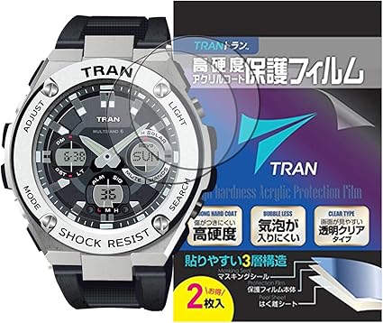 tran r トラン casio 腕時計 g shock ジーショック 対応 液晶保護フィルム 2枚セット 高硬度アクリルコート 気泡が入りにくい 透明クリアタイプ for casio g shock gst w110 1ajf gst w110d 1ajf gst w110d 1a9jf
