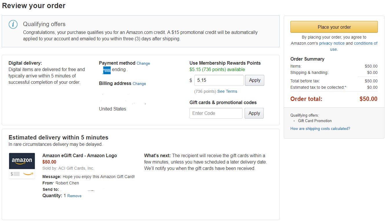 amazon free 5 with 50 amazon gift card via text targeted points miles martinis