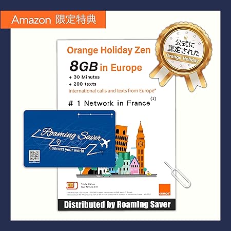 amazon限定 orange holiday ヨーロッパ プリペイドsimカード ー 4g通信 20gb 120分 sms 1000通 simカードホルダー sim取り出しピン 20gb